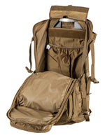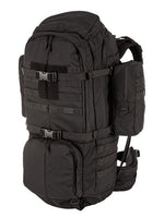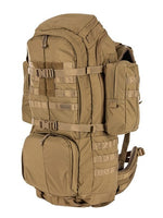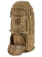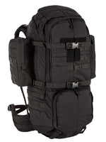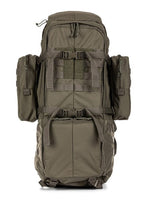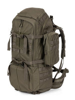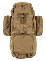 Our first true deployment bag features the kind of versatility men and women in uniform deserve. The heavy-duty construction allows the hydration-compatible RUSH100™ to thrive in hostile environments, yet its modularity is the ideal response to fast-changing situations. Side pouches can be quickly detached and converted to a shoulder bag for effortless gear deployment. A first-grabs pocket keeps readily needed items quickly accessible and includes a fleece-lined eyewear pocket. The adjustable shoulder strap and gear belt in a 60-liter volume system is capable of carrying your heaviest load. Comfort is ensured by a padded, removable load-bearing waist belt, which keeps weight loaded on the hips and your essential survival gear close by. The adjustable shoulder straps with load lifters and a sternum strap keep things aligned on long hauls and dual compression straps with Duraflex® Autolock buckles ensure everything is tight. The custom flat aluminum frame provides rigidity, ergonomics and load transfer while the horizontal fiberglass rods provide torsional rigidity.