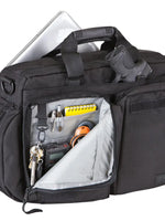 Tough enough for the battlefield, with a professional finish that fits into any boardroom, the Side Trip™ Briefcase is one of our most popular, multifunctional cases. Constructed from durable yet stylish 1050D textured nylon, with molded handles and a removable shoulder strap, the Side Trip™ cuts a purposeful, all-business profile. Inside, you’ll find MOLLE and SlickStick® compatible storage options to attach pouches & accessories, a roomy main compartment made to hold a full-sized laptop, and a TacTec® covert pocket that’s perfectly sized for a sidearm. Side pockets blouse out to hold bulky items, and a rain cover stows in the bottom of the bag. Gear up for a productive day with the Side Trip. Imported.