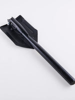 - Design: The tool is an army-style folding pick shovel with a long wooden handle and a steel blade and pick