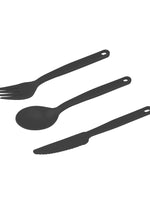 Made from BPA-free, glass reinforced polypropylene our Camp Cutlery Set takes a full-sized fork, spoon and knife and clips them together with a custom sized carabiner.