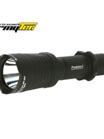 165g, 670 LED lumens: The Armytek Predator Pro is a long range and tough tactical torch. It has more settings for advanced users and is built for maximum power and run times. Single 18650 battery or 2 X CR123As. Cool white version with black bezel. FREE RECHARGE KIT OPTION!
