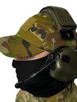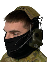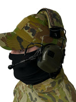 It is constructed with 1000Denia to wrap securely around the hearing protection and an Air Mesh inner to prevent the hearing protecting digging into the head during a long day at the range.