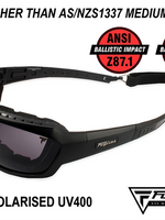- Safety Rated: Yes. Ballistic impact (205m/s) shatterproof lenses. AS/NZS1337.1, ANSI Z78.1 and US military MIL-PRF-31013 (MIL-STD-662) standards.