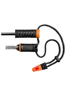 Gerber’s Fire Starter is a compact, packable survival tool that is easily attached to a backpack or keychain with a lanyard, ensuring you are always prepared. With built-in water-resistant tinder storage, an easy to spark ferrocerium rod, a sturdy metal striker, and a 100 decibel emergency whistle, you are ready to take on the wild