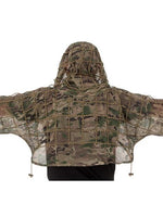 The Valhalla Ghillie Short conceals the head and upper third of the body and can be worn in conjunction with chest rigs or duty gear. The suit body is constructed from a strong lightweight mesh material to keep ventilation high and weight low.