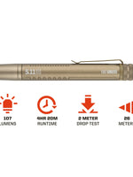 Clipped to your chest pocket, backpack, or belt, the EDC PL2AAA flashlight is as tough, portable, and useful as it gets. It emits 107 lumens and features a runtime of 4 hours, 20 minutes. Take it anywhere and everywhere.