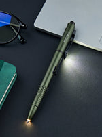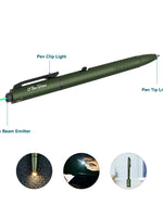4-in-1 Design: It features a pen, pen clip LED light, pen tip light, and green pointer beam at the tail, providing multiple functions in one device.