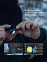 - Head to Hand in a Snap: The quick-release bracket lets you switch from headlamp to handheld flashlight instantly. From trail to campsite, this dual-use light adapts to your day, your task, your rhythm.
