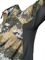 It utilizes two high-performance fabrics in a body-mapped design allowing for maximum movement and rapid heat dumping to ensure you stay dry and cool while hunting in warmer climates. It also feels amazing on the skin!