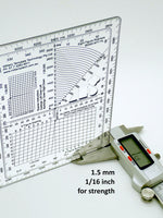 These protractors are digitally printed on the underside of 1.5mm thick plastic to avoid parallax error. They are then laser cut to an accuracy of +/- 0.25 mm.