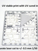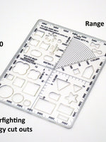 We have designed a 360 degree protractor to fit inside a Vui Tui – Field Message Notebook cover, and have added a number of common Warfighting Symbology shapes so that your protractor can double as a map marking stencil, as well as a Range Finding Arc.