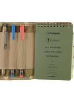 Designed for the minimalist, the Platatac All Weather Notebook Cover is a 'back to basics' style cover for our All-Weather Notebook. Featuring an elastic notebook slot, four elastic loops for stationary and a shock cord toggle for a quiet opening, the All-Weather Notebook Cover is slim and lightweight making it perfect for the chest pocket.