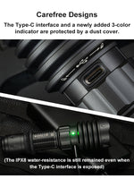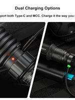Dual Charging Options: In addition to MCC charging, the flashlight offers a hidden Type-C charging port, ensuring versatile charging options to suit various needs.