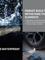 Remarkable Performance: Max output: 2,600 lm; Max throws: 630 m; Peak beam intensity: 99,310 candelas.
