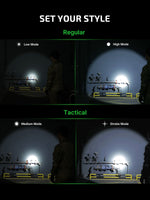 Programmable Modes: Freedom to easily choose between regular mode and tactical mode, with different experiences with the tail switch. Strobe is available in Tactical mode.