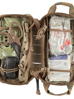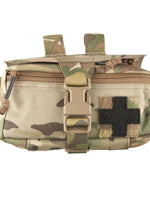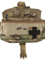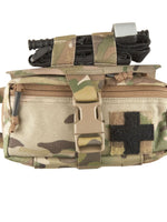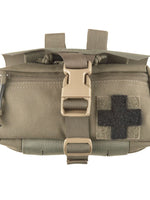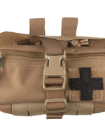 It can be mounted on any MOLLE/PALS platform or first-line belt and rapidly deployed in a matter of seconds for when you need it most, so you can work with your med kit next to the casualty by simply unclipping the Fastex clip and pulling across the pouch, via the handle to remove it from the MOLLE/PALS compatible velcro hook and loop panel.