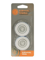 The UST Survival Towel packs are ideal for ultralight backpacking, international travel and emergency preparedness. These reusable towels can be used wet or dry and are packaged in super compact and lightweight discs.