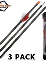 With these Take Down Arrows you can create a compact survival kit. 3 sections screw together to make an arrow, you have three arrows total. Fletchings are small and 4 inches from the nock. The Tips are for practice only and the 3 sections screw together.
