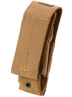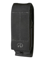 This large, nylon MOLLE system sheath features a snap webbing strap on the backside for attachment. This attachment webbing can also hold a MUT® accessory wrench. The sheath features a Leatherman logo, a hook-and-loop front closure and an internal storage panel to hold extra bits.