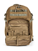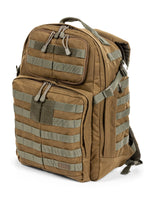 The generous MOLLE attachment points and spacious storage compartments enable users to organize their gear efficiently and accessibly. With its signature Center Line™ design, the RUSH® 24 2.0 Backpack exhibits a sleek and modern appearance that blends seamlessly with any environment. The contoured yoke shoulder strap system ensures a comfortable fit, while the back panel ventilation channels reduce contact area and allow warm vapor to escape, enhancing breathability during extended wear. The durable water-resistant fabric coating repels moisture to keep your belongings dry and protected. The RUSH® 24 2.0 Backpack is also compatible with the 5.11® RUSH® Tier System, allowing for modular and customized attachment of accessories and pouches. Experience the ultimate in versatility and performance with the RUSH® 24 2.0 Backpack 37L.