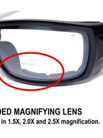 - Lens Type: Polycarbonate Safety Lenses - 1.5X, 2.0X and 2.5X bifocal magnification
