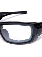 Our bifocal safety glasses are available in our gloss black Slab frame in 1.5X, 2.0X and 2.5X magnification.