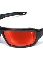 Fuglies PP16 safety sunglasses offer AS/NZS1337 certified industrial eye protection. Smoke tinted polarised medium impact safety lenses with a red revo mirror in our gloss black Striker frame. Removable foam gasket and soft EVA rubber nose pads.