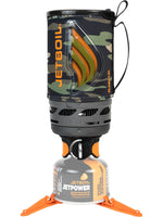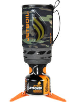 FLASH™ is the ultimate outdoor gear choice for those who want to get the most from their activity. Many outdoor enthusiasts have experienced the benefit that hot food and beverages add to their adventure. FLASH is an all-in-one design, combining burner and cooking vessel in a compact unit offering convenience, speed, and safety for outdoor cooking on-the-go. Everything conveniently stacks and stores inside FLASH one litre vessel/drinking mug. Flash™ is designed to be one of the safest cooking solutions out there. The cooking cup clips onto the burner, preventing accidental spills, and the fuel canister tripod ensures overall stability. The insulating cozy has a color-changing heat indicator that signals when contents are hot.