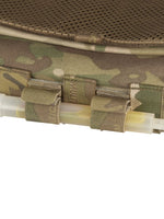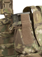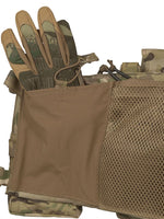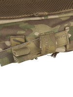 Against the body centrally is an velcro closure mesh pocket. A long zip can be inserted into this pouch to make it zippered admin pocket. Either side of this is a Tweave 4 way stretch pocket that can be used to hold additional mags, radio, a map, notebook, GRG or marker panel.