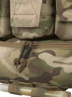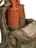 At the extreme ends of the PK5 are two medium zippered accessory pouches with additional clip closure. These pouches will hold a water bottle such as the Platatac 1 Litre flask or a 1 Litre Nalgene, or utilising the internal open-top mesh pouch with bungee retention, a single ANPRC 152 radio can be carried when utilizing the 19mm clip to close the pouch. A small zippered pocket on the front of each pouch is perfect for smaller items like cam kits, gloves etc. 2 x Rows x 2 Columns of external PALS on either side of each pouch allow you to attach smaller MOLLE compatible pouches such as grenade pouches.