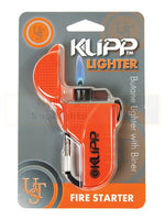 The UST Orange Klipp Lighter is a high-performance, windproof 1.2mL butane lighter that lights up to 30,000 times. It features an integrated zinc die cast carabiner design and piezo-electric ignition that works when wet with the zinc die cast wind guard and lever, plus the flame adjustment provides proper oxygen mix for optimal performance up to 2,438 meters.